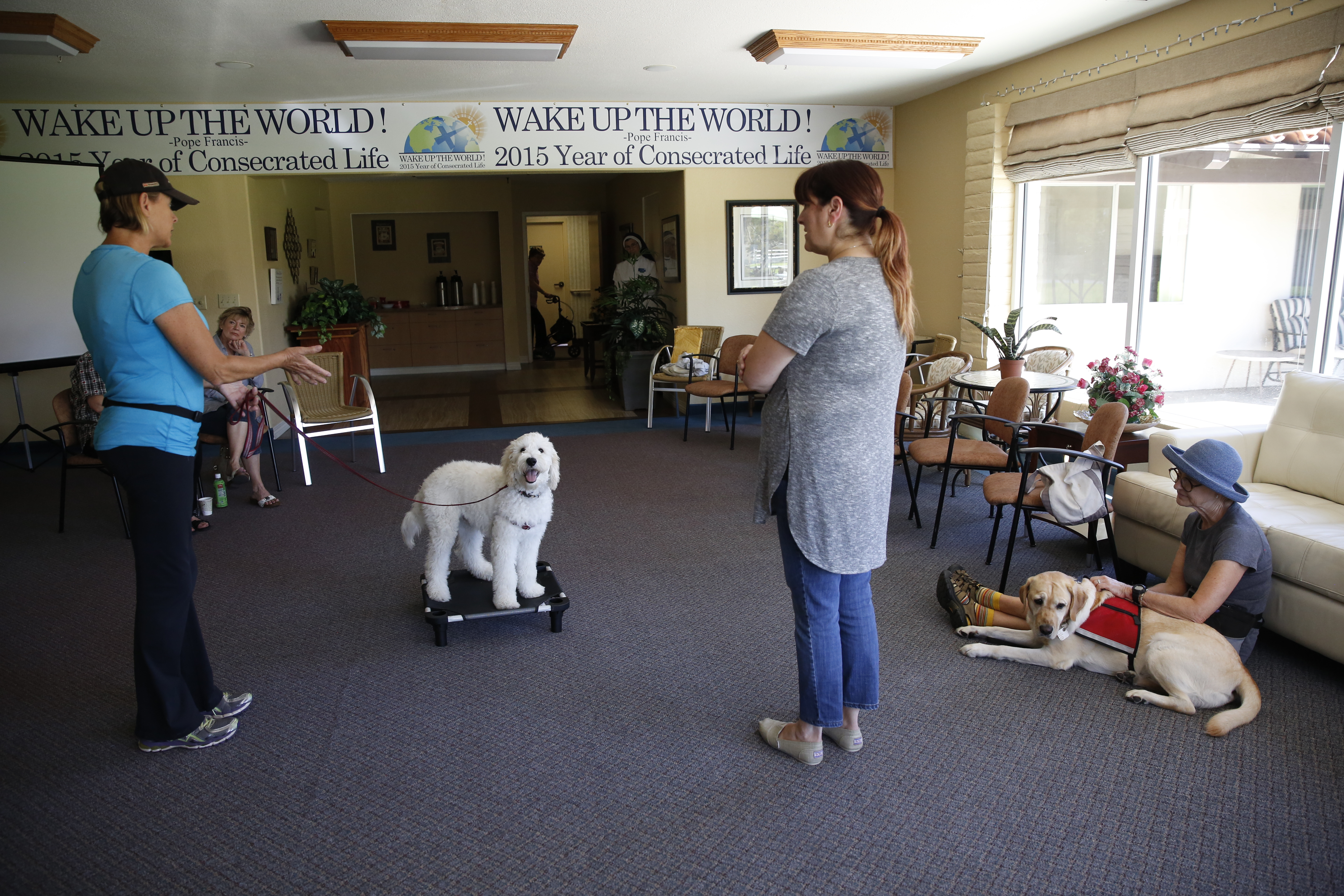 Once a month Mary Kay conducts advanced service dog trainings for an invited group of service dog teams. She is a master trainer who specializes in fine-tuning service teams and has been a valued member of the Love Heels program for many years.